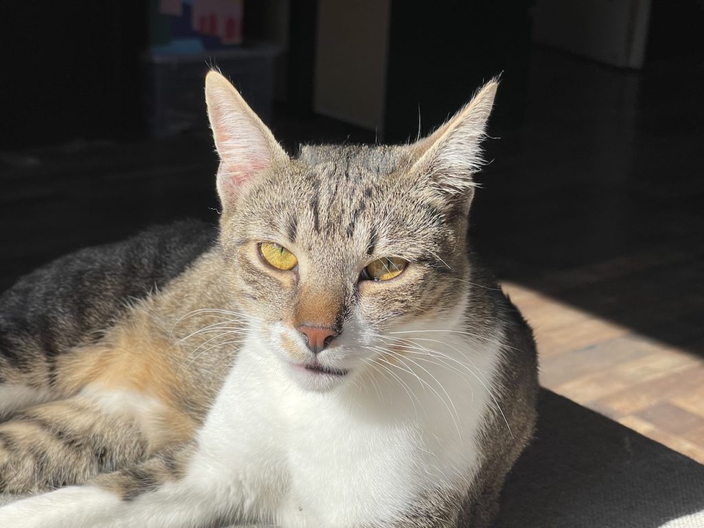 Cili első szülött gyermeke, 2022 március 26.-án született. Kedves, játékos, bújós cicalány, 2023 januárjában lett ivartalanítva. Kicsit félős, de hamar feloldódik. A bájos, kedves pofija egy igazi amazont takar, valamiért az egyik cicát nagyon nem bírja a csapatból, látszólag ok nélkül támadja (persze elkülönítettük őket, nincsenek állandóam együtt, így amikor találkoznak, kisebb az esély arra,…